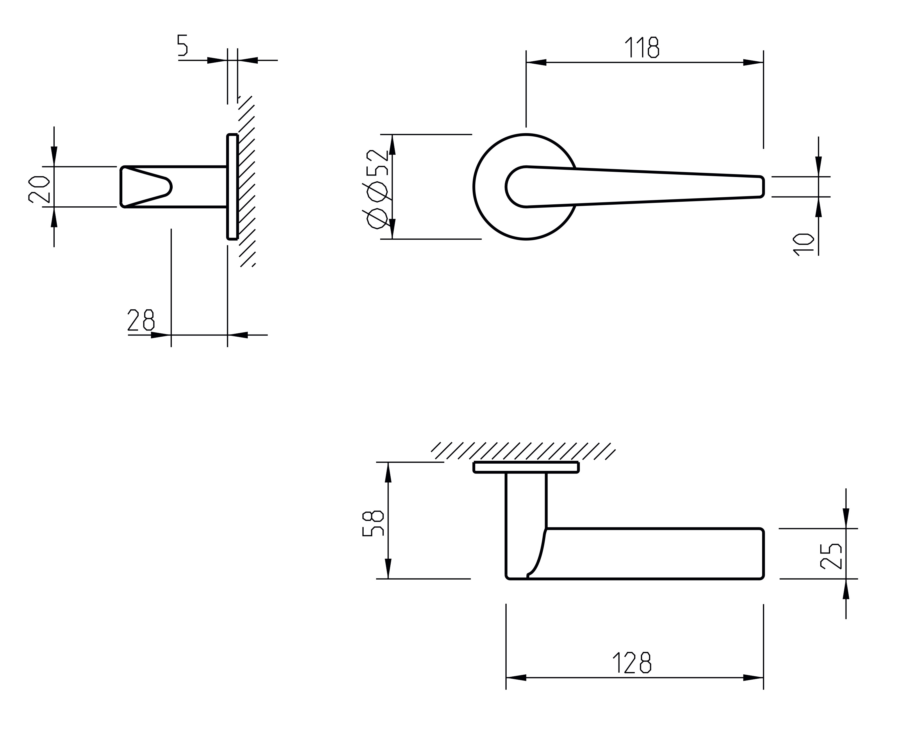 - Fest / drehbar gelagert (der Türgriff ist fest mit dem Unterteil verbunden)